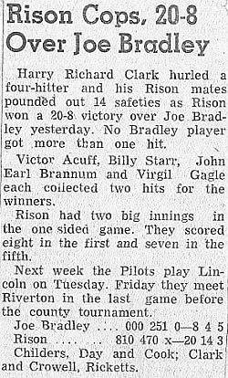 "The Rison team pictured above romped away with the championship in the Huntsville Babe Ruth League. They will enter the playoff this week favored to win. The team won seven, lost one in regular season play. Rison plays Lincoln in the first game Monday morning at 8:30. Big Spring plays Joe Bradley at 1:30."