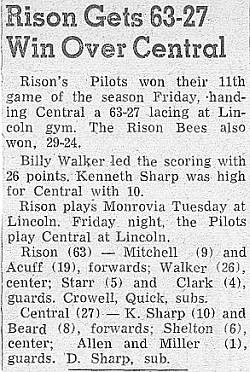 ![]() Back row, adult standing: Brooks (Bubbie) Church, coach Do you know the missing year and names? ![]() ![]() Front row, left to right: Martha Green, Larry Byrd-17, Sam Chisam-19, Jerry Byrom-13, Eugene Marks-1, Billy Berry-15, Phillip Allen-12, Bryant Benson-5, Mona Gay Branum Second row, left to right: Brigitte Ball; Doyle Segrove-8, Aubrey Turner-3, Wayne Lee-9, Billy Starr-6, Harry Clark-21, Buddy Burkett 19, ??-7, Wanda Renegar Third Row, left to right: Imogene Gault, Eddie Myhand-20, David Greenhaw-14, (?)Hymer-2, ??-18, John Earl Brannum-16; Rodell Walker. Back row: Hub Myhand, Bill Rice ![]() Front row, left to right: Ray Strickland, Al Ivey, Thomas Blount, Jimmy Falkenberry, Dickey Wilbourn, Fay Dowell Middle row, left to right: J.D. Mullican, Buddy Walker, Walter Johnson, Ray Dowell, Larry Gray, Moose Campbell, Third row, left to right: Jerry Pridmore, Billy King, Bub Gault, Woosie Mitchell, Mickey Falkenberry, Erskine Neal Top row, left to right: Fred Knight, Coach, Wendell Beard, George Lilly
