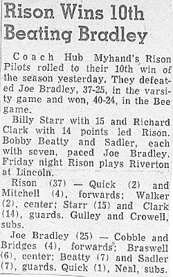 ![]() Back row, left to right: Mona King, Jean Scarborough, Lana Fisher, Virginia Brown, Robbie Gault Front row, left to right: Connie Fisher, Ann Schrimsher, Mary Jo Gray, June Fitch Shovel in the coal Get up the steam Fifteen rahs for Rison's team