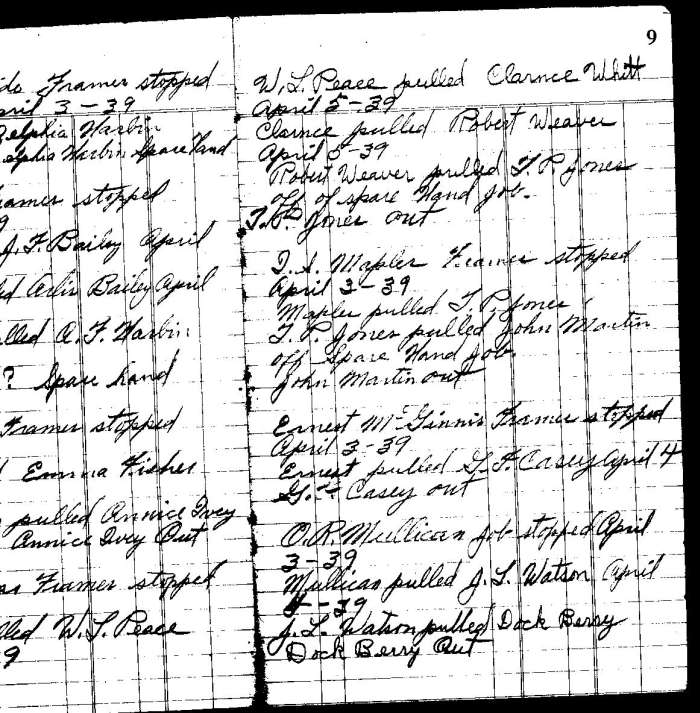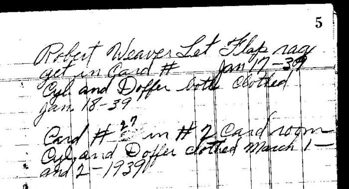 We learned from Thurman Frasier, who worked in cotton mills, that the reason women didn’t work as loom fixers and doffers in the weave room is that the equipment was too heavy for them to operate. He had no idea as to how the young boys would have been able to operate the equipment unless they were given jobs as helpers.