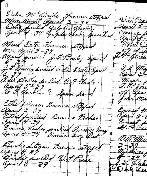 He developed a headache and told his supervisor (who was his brother, Clarence) what had happened and Clarence told him to go home. When he went to the doctor the next day because of the severe headache, the doctor said he had a blood clot on his brain. From that time on he suffered severe headaches and had two operations to remove pieces of his skull to relieve pressure on his brain. He died on March 3, 1929, at Huntsville Hospital after the second operation; he was 19 years old; I was 5 1/2 months old. I would like to know if anyone else died due to an accident in the mill. The mill set up a trust fund for me at Rison Bank, the money from which could be used for my benefit with approval of the bank trustees. I don't know but I believe it was used for extraordinary expenses like doctor, dentist, etc. Also, when Rison School was operating on a 7 month school year, one could pay and go the additional 2 months and so I attended for the full 9 months made possible by the trust. When I graduated from high school there was enough money to pay my tuition for a course at the Nashville Business College in Nashville, TN. I don't know the original value of the trust fund but even a little money was a lot during that time.
