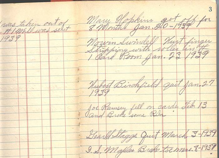 At my request, Sally shared the story below. I thought that it was particularly noteworthy because one’s impression could easily be that the mill leaders were unfeeling so to learn otherwise is touching and is a story that needs to be told.